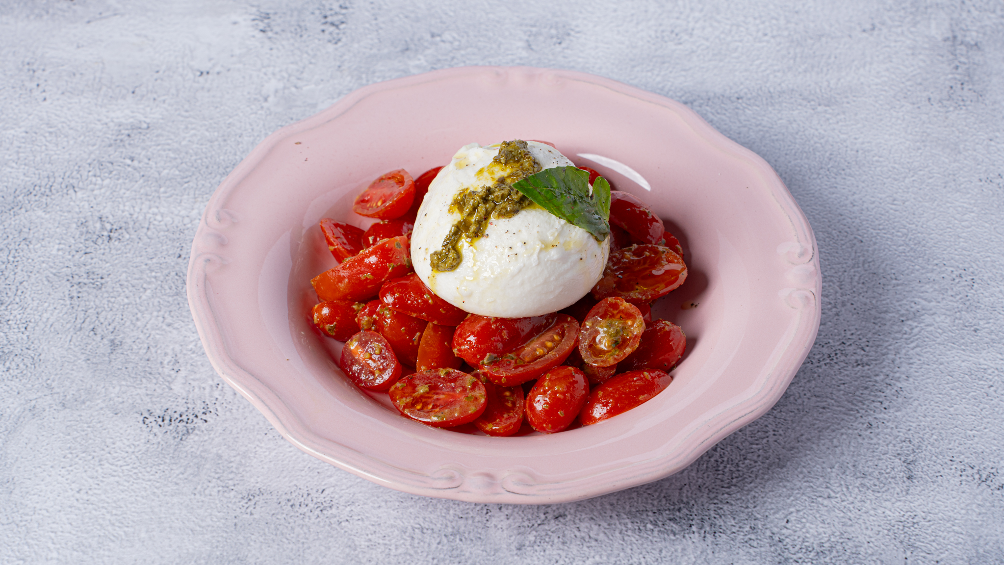 cherry tomatoes, burrata, balsamic vinegar, basil, extra virgin olive oil