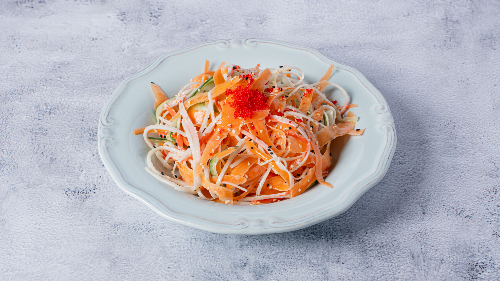 Salad with crab mix , carrot, cucumber & mayo citrus dressing