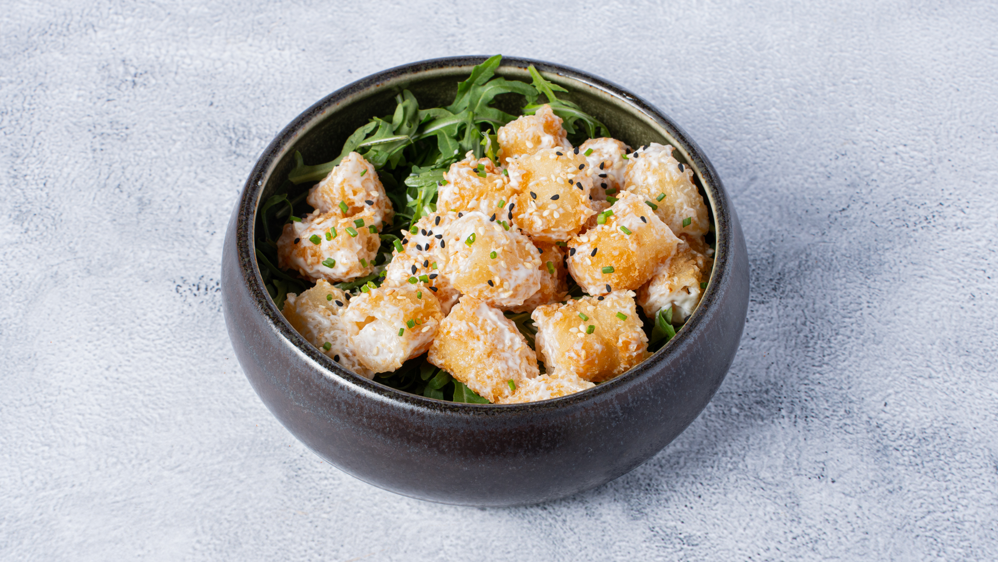Tempura shrimp bites, spicy mayo, sesame